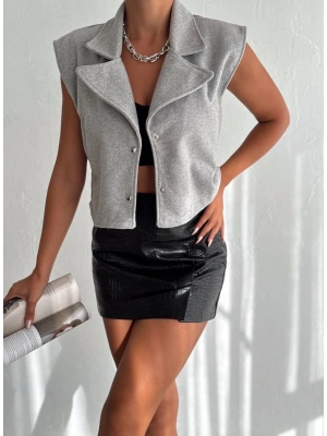 Önü Çıtçıtlı Cepli Kaşe Yelek Gri F2253