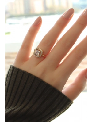 Gold Baget Ve Zirkon Taşlı Kare Yüzük - Bamido